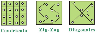 El muestreo de suelos se deberá realizar al azar y en las siguientes formas. Sistemáticos. Como ilustran los siguientes esquemas:
